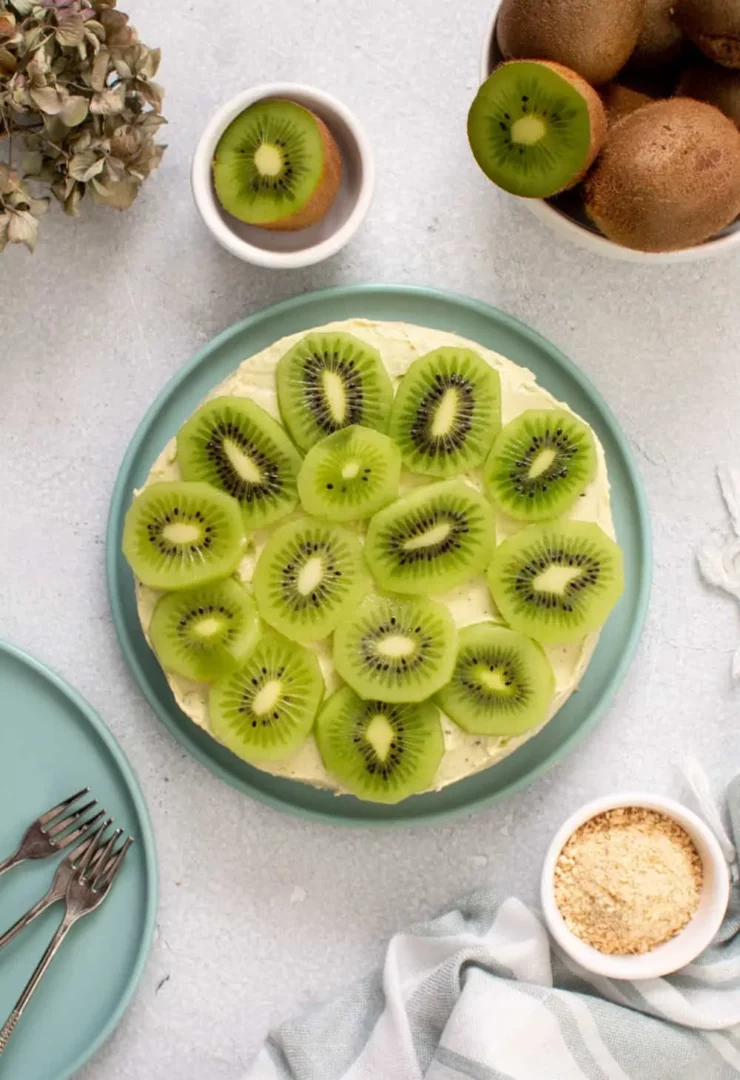 El kiwi es un superalimento que aporta numerosos beneficios nutricionales. Es rico en vitamina C, lo que ayuda a fortalecer el sistema inmunológico y combatir la fatiga. Además, contiene serotonina, una hormona que puede mejorar la calidad del sueño. Incorporar puré de kiwi en tu tarta de queso no solo le da un sabor exótico, sino que también te proporciona una opción más saludable.