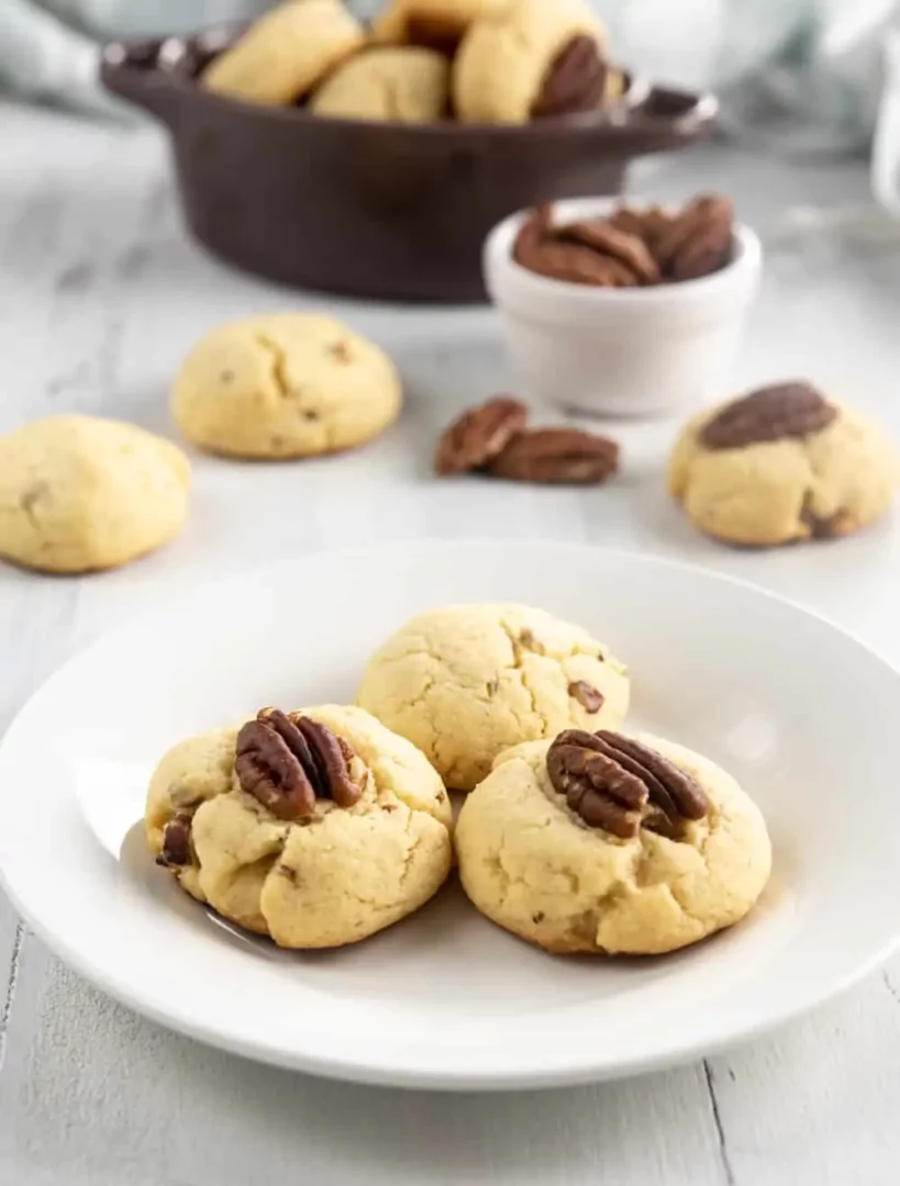 - ½ taza de nueces pecanas picadas en trozos grandes (reservar algunas cortadas por la mitad para cubrir las galletas): Las pacanas son el toque final que hace que estas galletas sean verdaderamente especiales. Asegúrate de usar nueces frescas y bien secas.