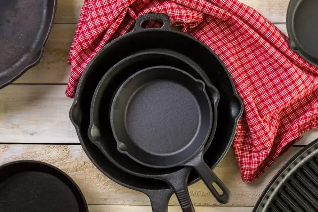 Las sartenes de hierro fundido rugosas