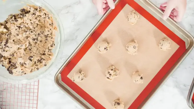 Cubre la masa con papel film o un recipiente hermético y refrigera durante al menos 30 minutos antes de proceder a formar las galletas crudas.