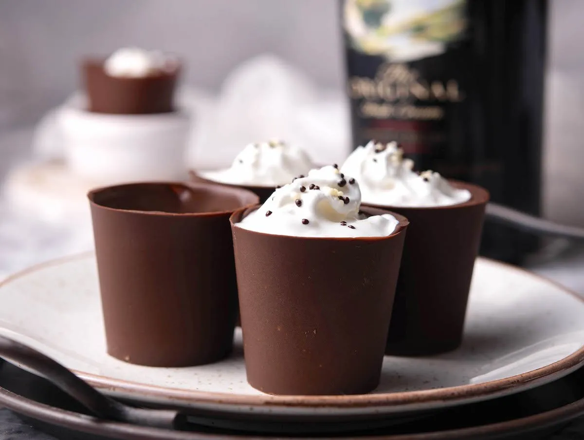 Además del chocolate, necesitarás vasos de papel pequeños o un molde de silicona alimentaria con forma de chupitos para darle forma a tus creaciones. También es útil tener a mano diferentes bebidas que puedas utilizar como relleno, como Baileys, café con leche y caramelo salado.